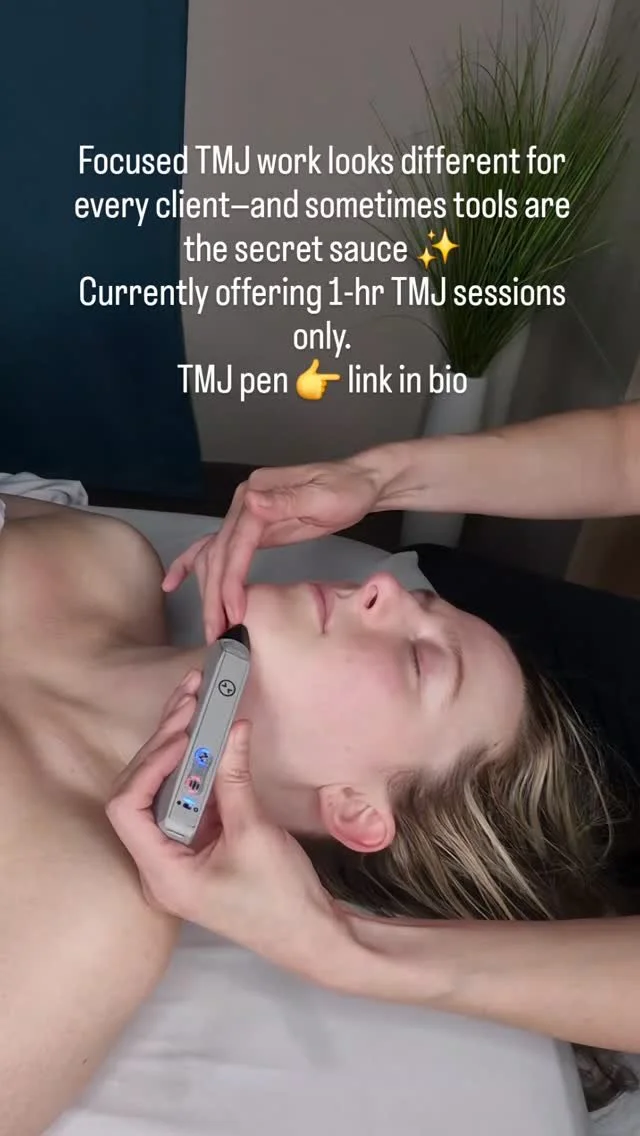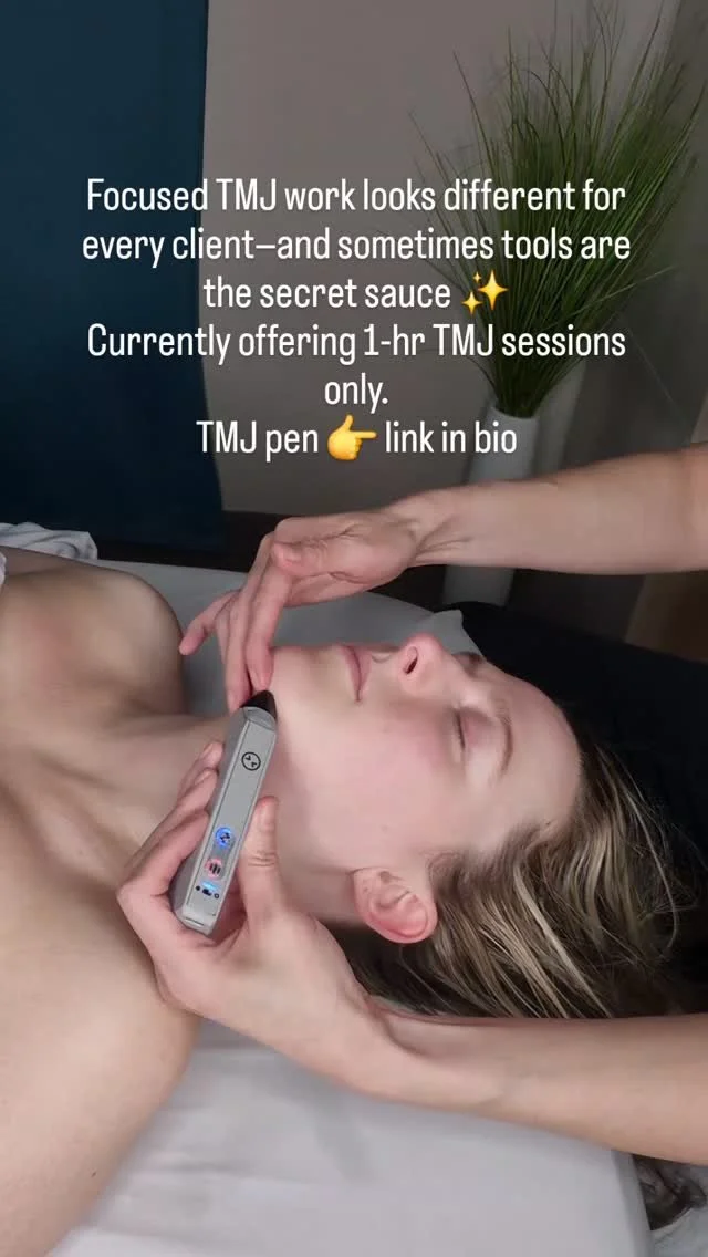 Massage therapy may offer some relief for people with temporomandibular joint disorder (a condition commonly referred to as TMD syndrome or TMJ). Relieve jaw pain, facial tension, and headaches with specialized TMJ massage therapy. This focused treatment addresses the jaw, face, neck, and scalp using gentle, effective techniques—including intraoral massage—to reduce discomfort, improve jaw mobility, and support overall relaxation.