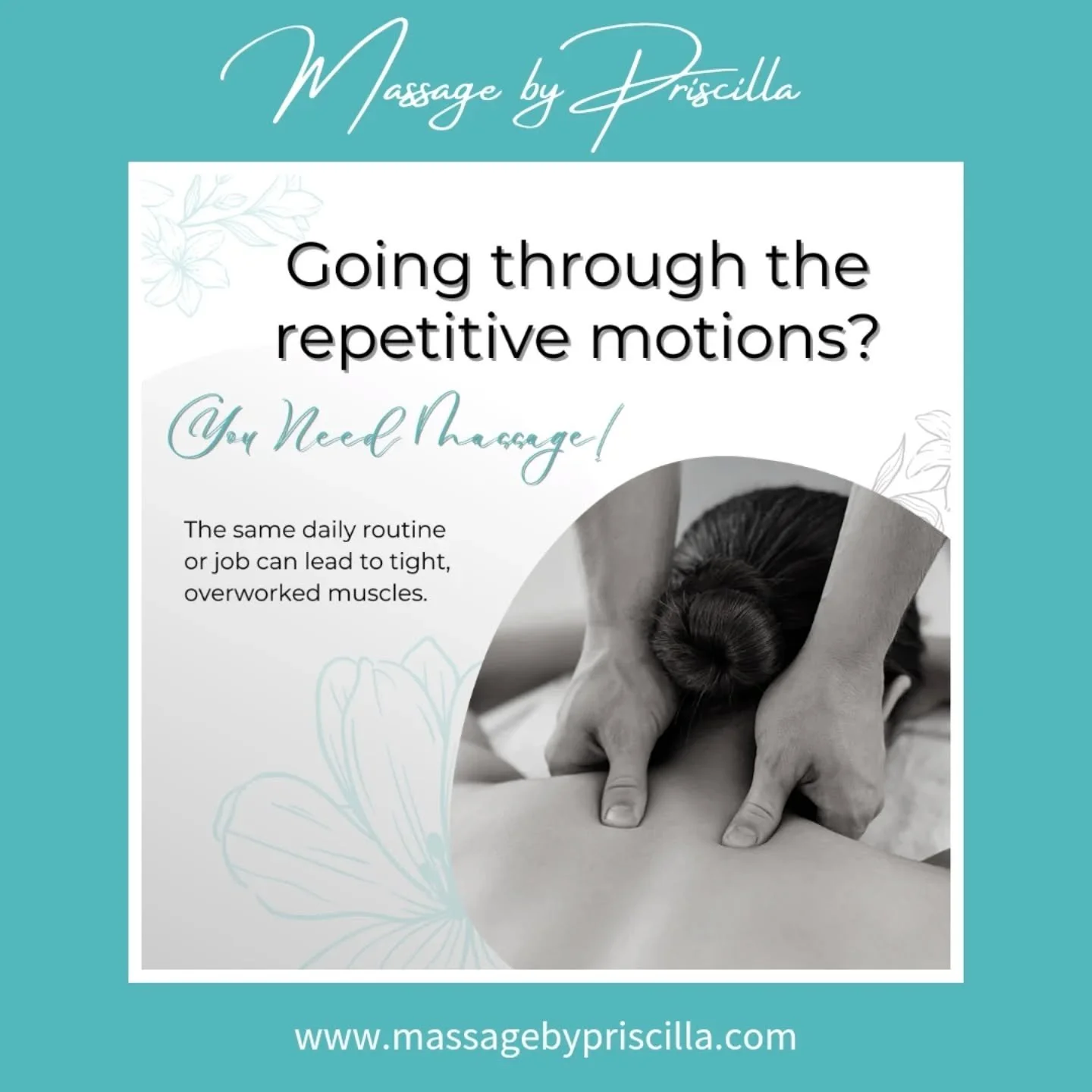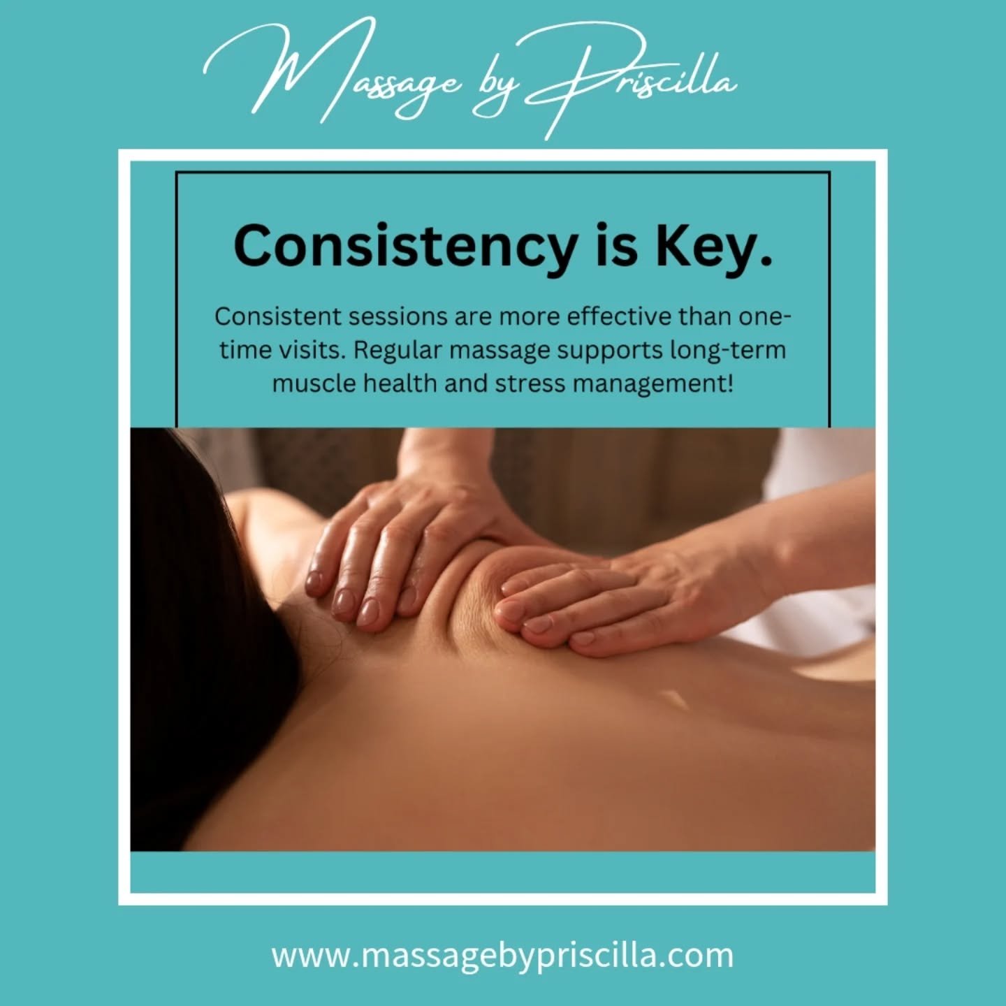 Priscilla’s massage journey started a decade ago. After having gone through some major life changes, she decided she wanted something different for herself.